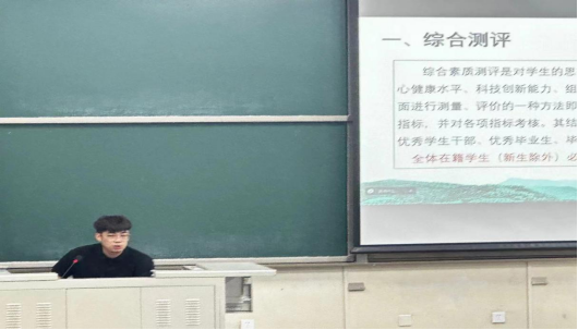 随后,韩天昊详细解读了《北京农学院学生综合素质测评办法》,就各类测评项的加分标准和细则进行了说明,明确了评议小组的具体工作任务和材料提交的时间及要求。还特别重点强调了在综合素质测评工作开展过程中,小组成员要始终保持客观公正,细致严谨的态度,严格按照《北京农学院学生综合素质测评办法》为测评依据开展,鼓励大家及时与老师进行沟通,保证综合测评工作经得起检验。