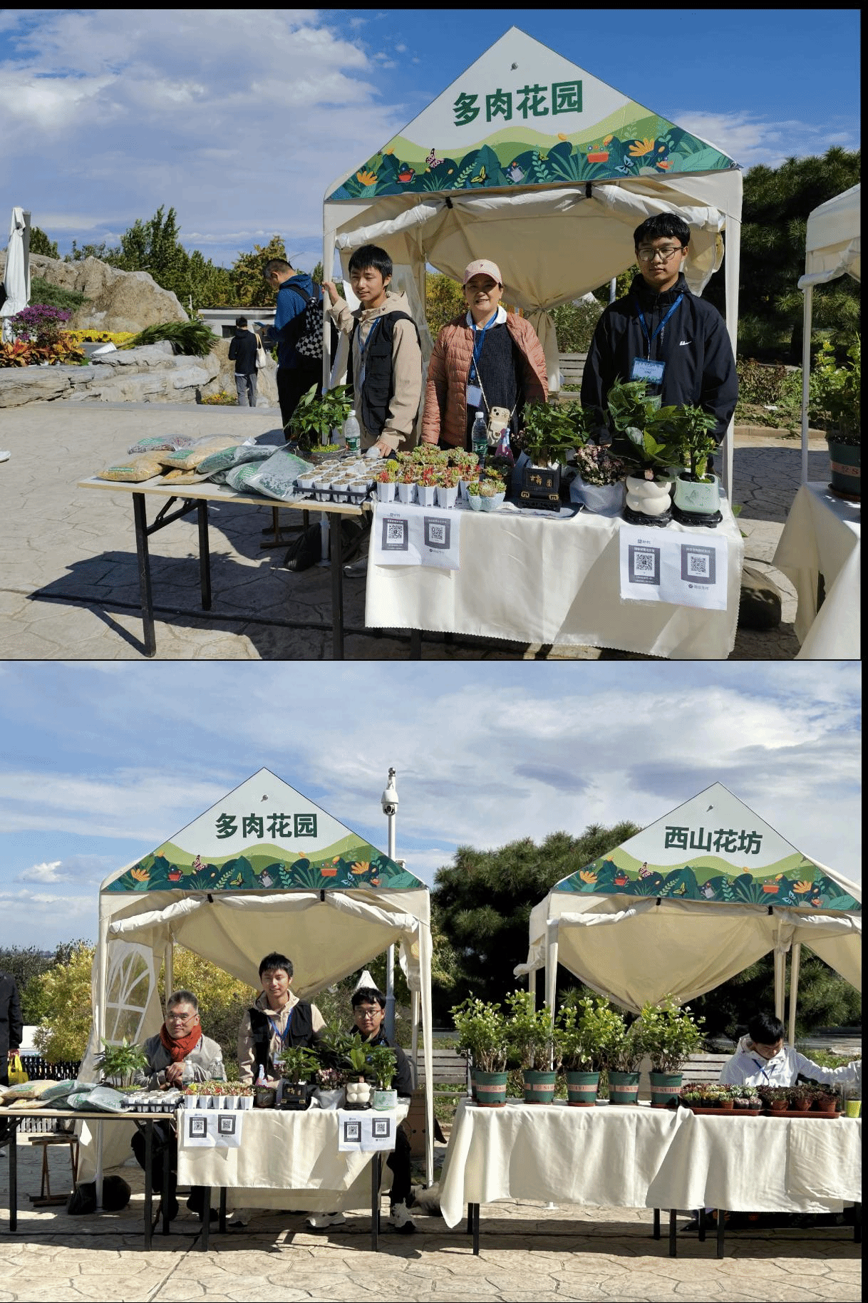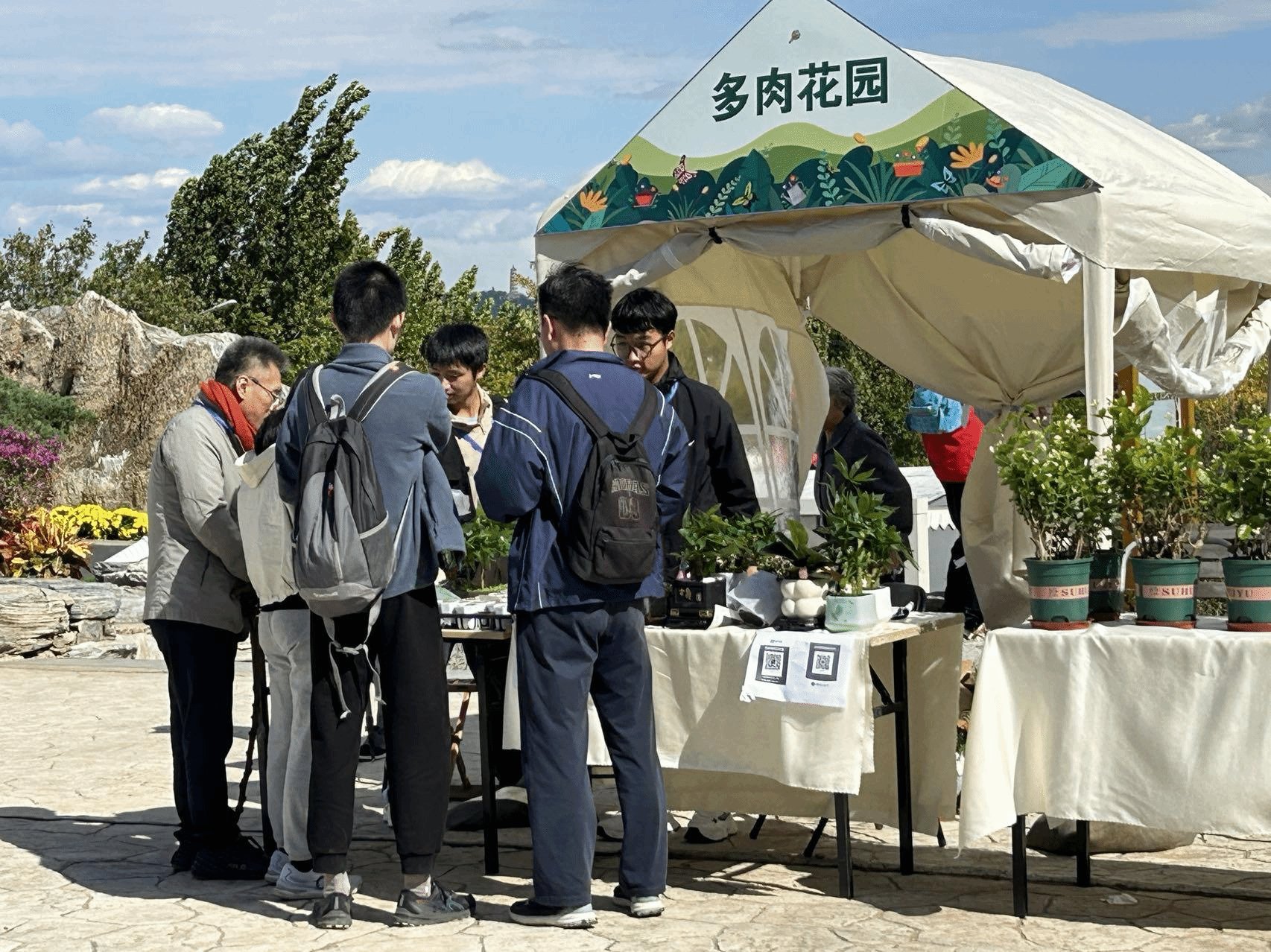 学生在市集活动中向首都市民展示了赵晖老师团队与北京金昌银创科技有限公司合作带来的多肉花园。大学生的参与为市集增添了新的创意和视角,精心布置的展台吸引了众多市民和游客的关注与参与。不仅丰富了市集内容,提升了活动的品质,也积极展示了师生良好的风貌,彰显了“树木树人、立德立艺”的院训精神。