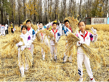 本年级同样以“三山五园是座植物园”为主题,以京西稻为主题开展了实践活动,也是一次意义非凡的劳动教育与科学探索。他们走进海淀京西稻种植保护区,观察稻田的生态环境和京西稻的生长形态,直观感受农业生产的艰辛。通过亲手参与京西稻的收割,孩子们在实践中传承和弘扬了传统农耕文化。同学们精心编排了小短剧,讲述康熙皇帝培育御稻米的故事,化身袁隆平先生青少年、中年和老年的不同时期,回顾了他卓越而有贡献的一生;还通过手抄报、创意画、草帽制作等作品,在提升艺术修养的同时加深对京西稻文化内涵的理解。