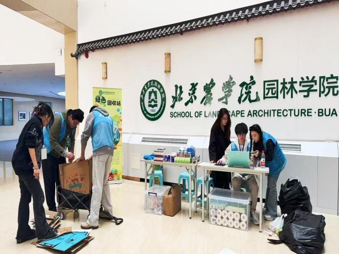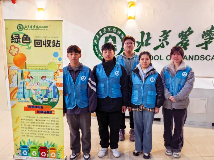 为进一步加大节能宣传力度,提高学生节能环保意识,将园林楼一层大厅化身为环保能量站,践行“物尽其用”的承诺,共同书写了属于北农园林人的绿色篇章。