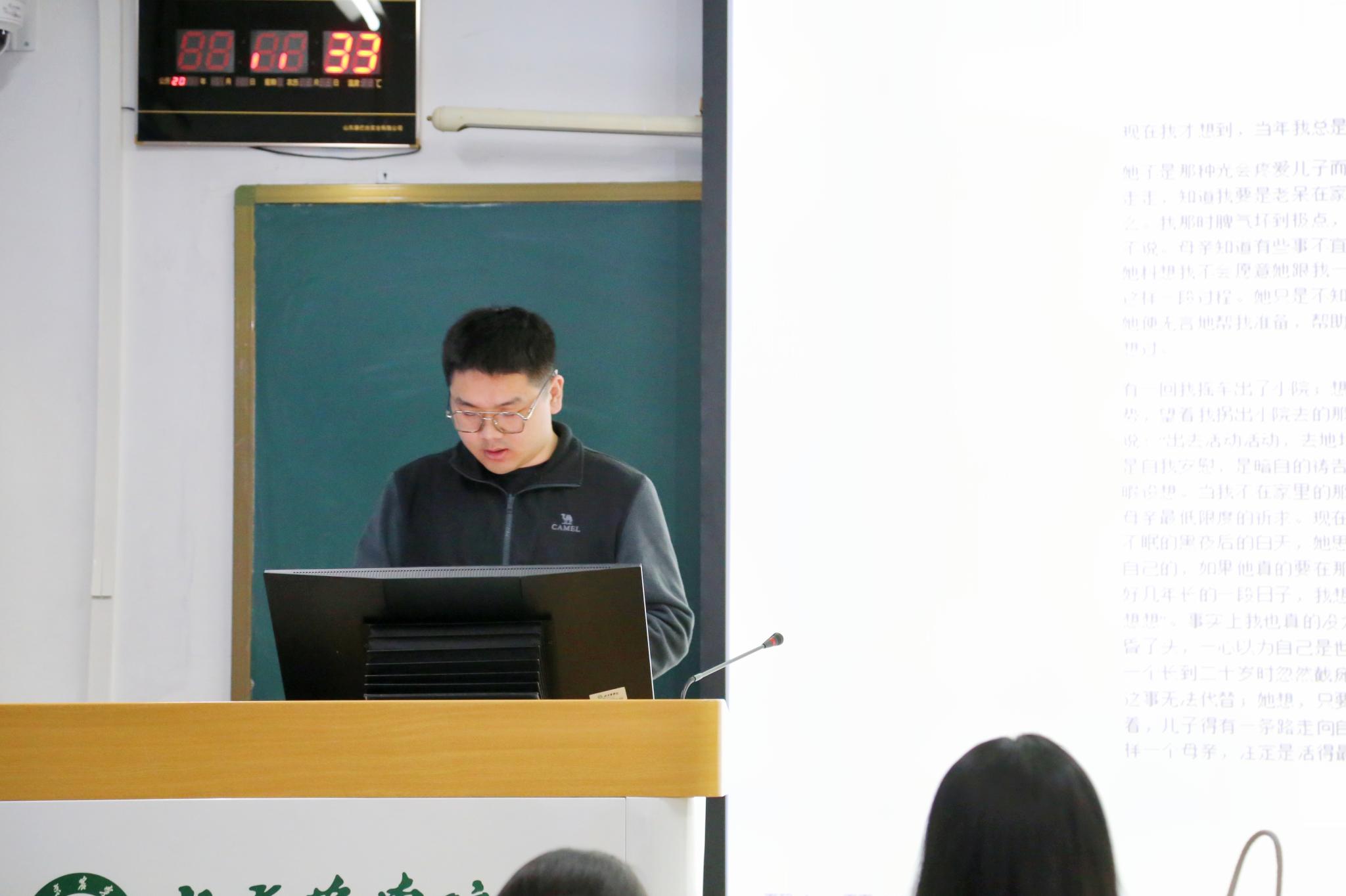 “夕阳将福贵和老牛的影子拉得细长,两个佝偻的轮廓渐渐融进五座土坟的阴影里。福贵解开拴牛绳,枯手抚过牛背凹陷处——那里本该架着犁耙的位置,如今积着层薄灰。”王昱婷同学朗诵的《活着》,带我们领略生命的顽强。