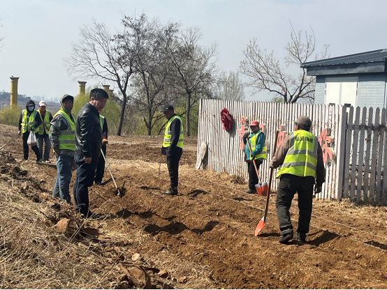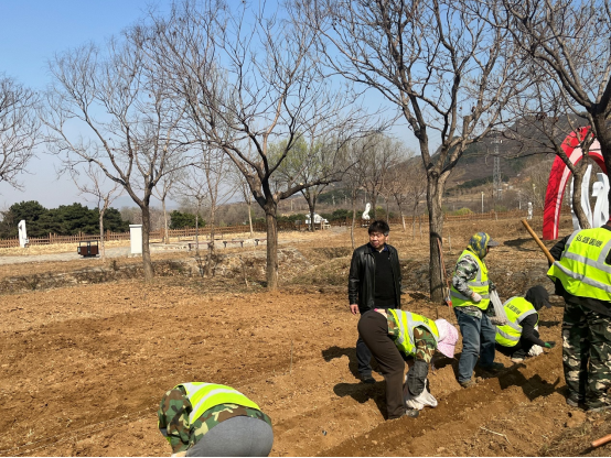 张克中带领研究生,带着500斤赏食兼用百合仔球,再次赴蔡家洼村玫瑰情园指导种植赏食兼用百合及景观营造。张克中现场指导农民整地、作畦、开沟及仔球栽种,特别强调了株行距、种植深度、施肥、浇水、前期田间管理等关键技术。食兼用百合品种推广和种植技术指导受到了农民的欢迎。该赏食兼用百合的种植示范,不仅能在6月中下为园区提供花卉景观价值,10月底也能让园区收获食用百合种球,获得经济效益。