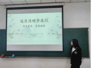 各团支部开展了“追思清明祭英烈—承先辈志,启青春程”的主题团课。通过讲述英雄故事、观看电影片段、号召红色行动等多种形式,再现了斗争年代先烈们所展现出的伟大革命精神。通过本次主题团课,同学们纷纷表示,进一步明确了新时代青年应有的价值追求和人生坐标,激发了在青春奋斗中续写时代荣光的使命感。
