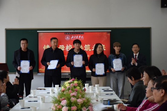 会上,学院为校友联络员颁发了聘书。随后,由校友联络员为退休老教师献花,表达对老教师们的崇高敬意与美好祝福。